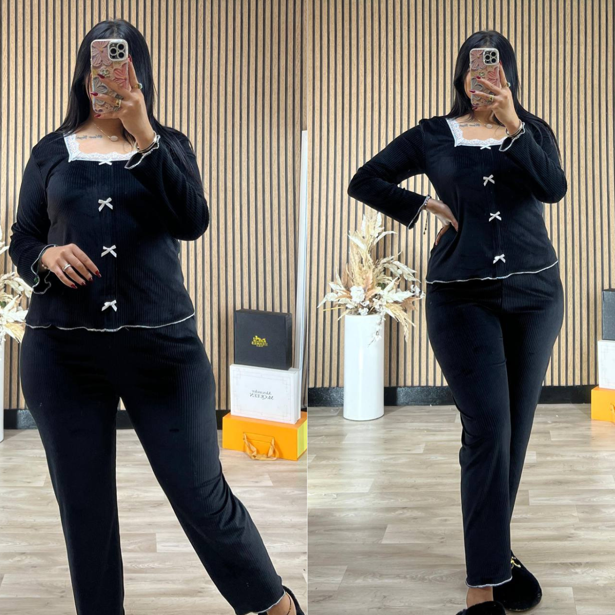 نقدّم ليك سيدتي بيجاما موبرا الفاخرة، الخيار المثالي لفصل الشتاء بفضل القماش ديالها اللي كيجمع بين النعومة، الدفء والراحة.
